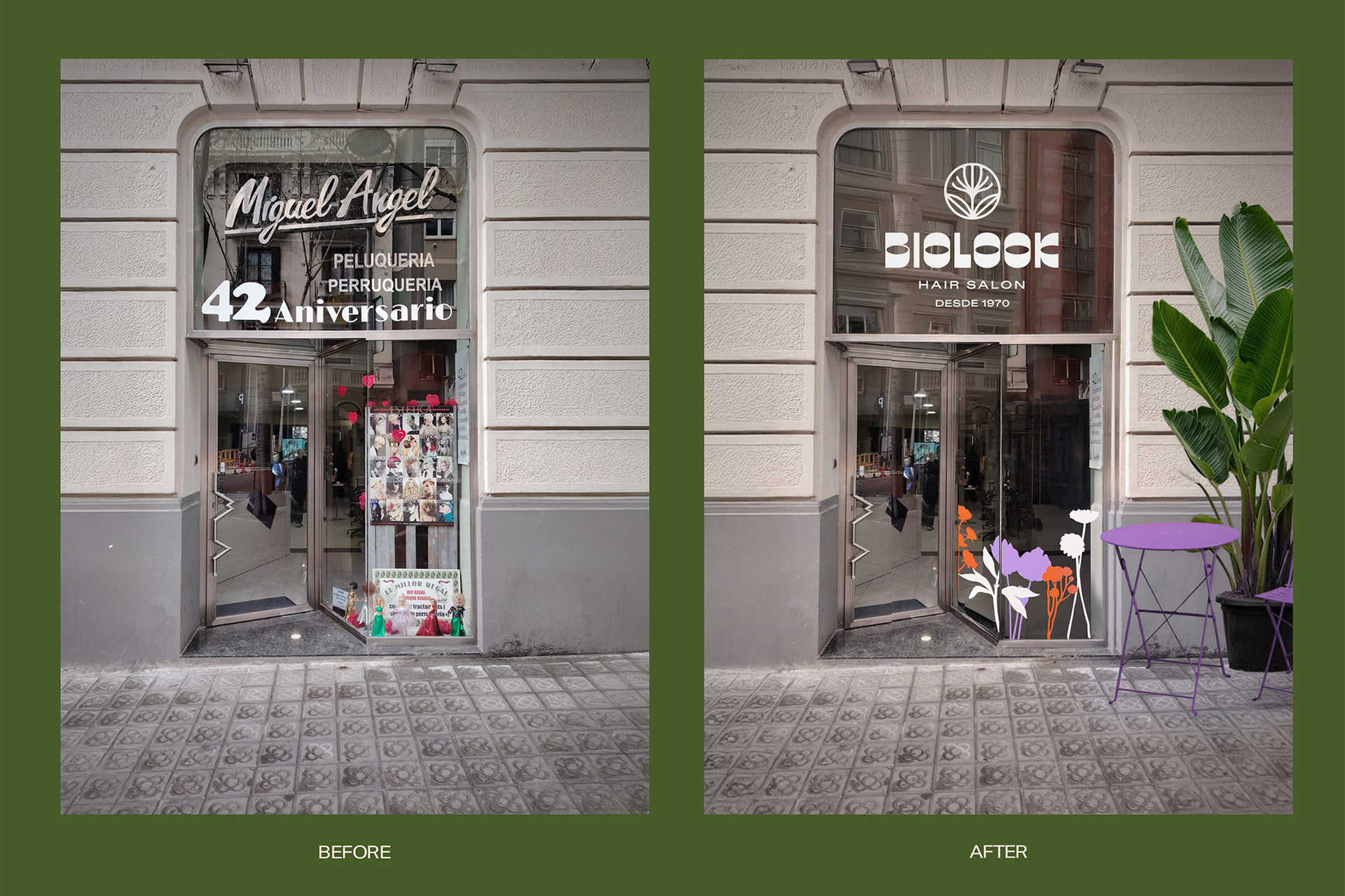 Biolook Hair Salon is the new chapter for a legendary Barcelona hair and beauty salon with more than 40 years of history and a loyal clientele. As they transition into the natural and sustainable market, my challenge was to create a fresh identity that speaks to younger generations while still honouring the brand’s heritage.
