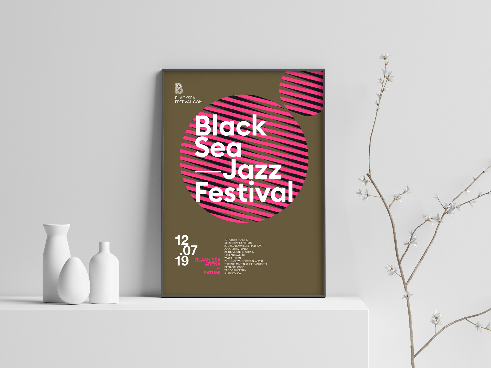 I picked the Black Sea Jazz Festival as a fictional client and played with type and graphics in clean layouts. The concept behind the letter B used as main image in the black poster comes from the name of the event (Black Sea) and its shapes are inspired by the waves and movements of the sea and jazz music.